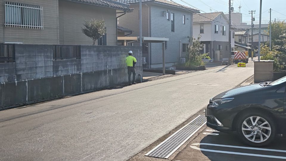 チーム全員で最終チェックを行い、作業完了!自分たちが手掛けた道が、目の前にまっすぐ綺麗に伸びている。この瞬間の達成感は、この仕事ならではの醍醐味です。交通規制を解除し、早速車がスムーズに走り抜けていくのを見ると、確かな手応えを感じられます。